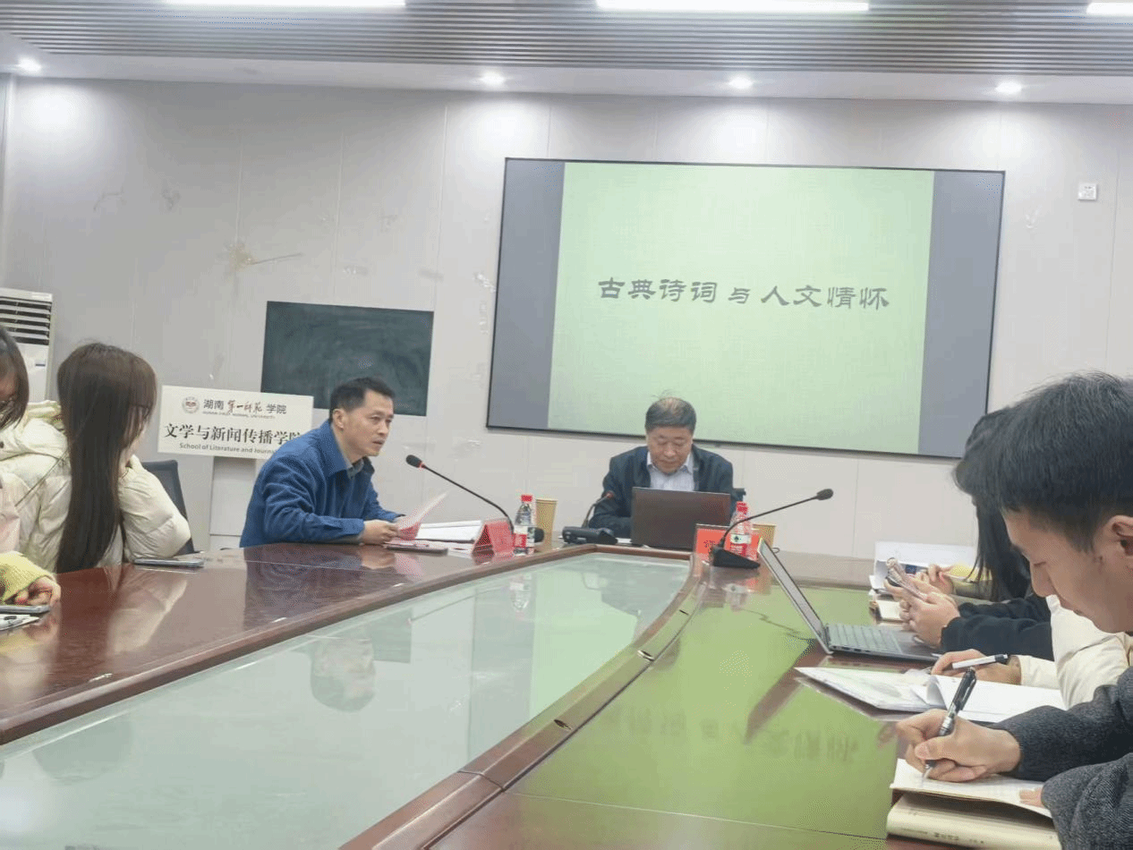 11月28日上午,南京大学文学院教授、安徽师范大学中国诗学研究中心特聘教授许结为我院师生开展题为《古典诗词与人文情怀》的学术讲座。文学与新闻传播学院师生百余人参加讲座。讲座由文学与新闻传播学院院长龙永干主持。