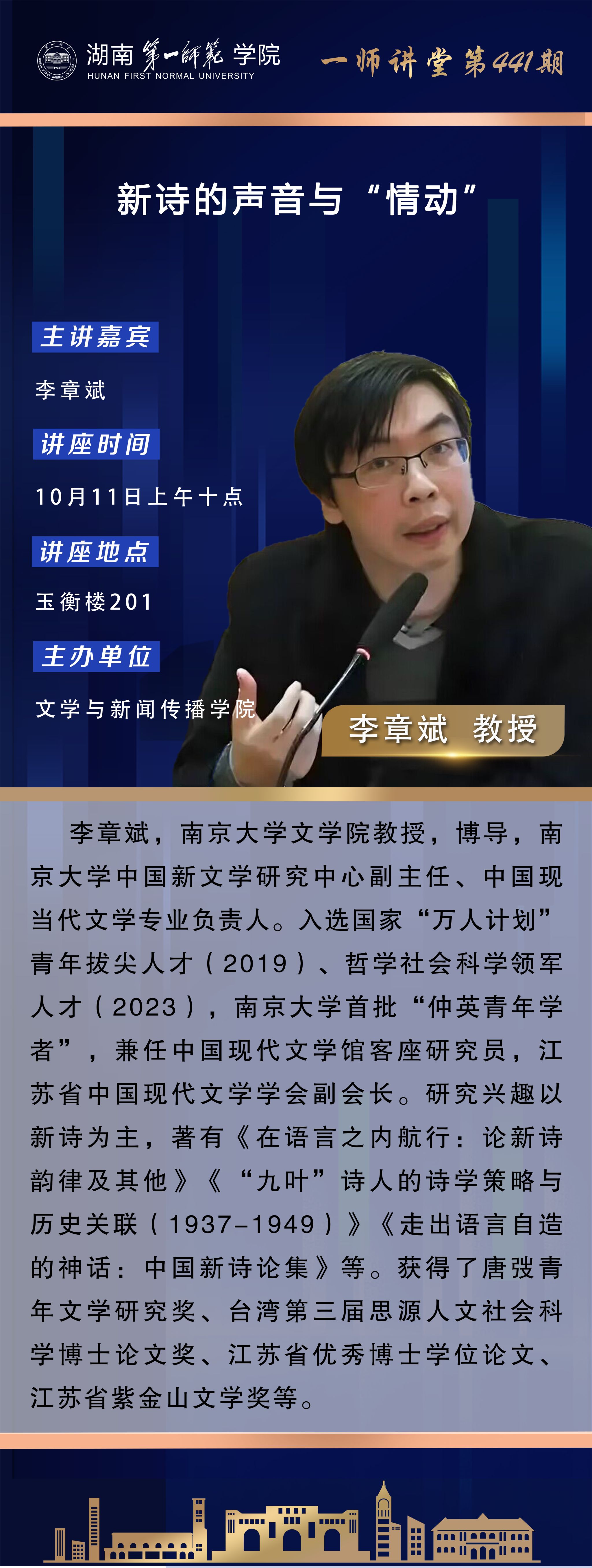 湖南第一师范学院一师讲堂第441期: 李章斌教授深耕新诗声音与“情动”,解码现代诗歌艺术密码