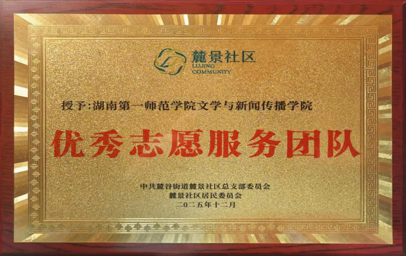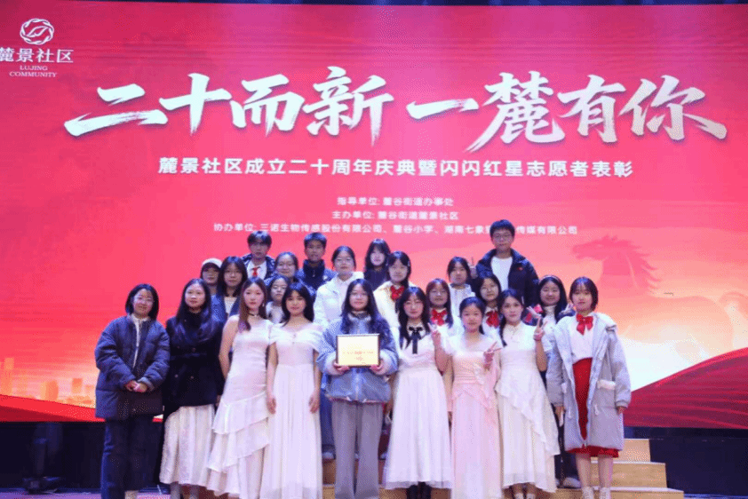 12月27日,麓景社区“二十而新 一麓有你”二十周年庆典暨闪闪红星志愿者表彰活动在麓谷小学体育馆落幕。中共麓谷街道麓景社区总支部委员会、麓景社区居民委员会联合授予我院“优秀志愿服务团队”称号,这是社区对我院长期助力社区精神文明建设、践行协同育人使命的高度认可。
