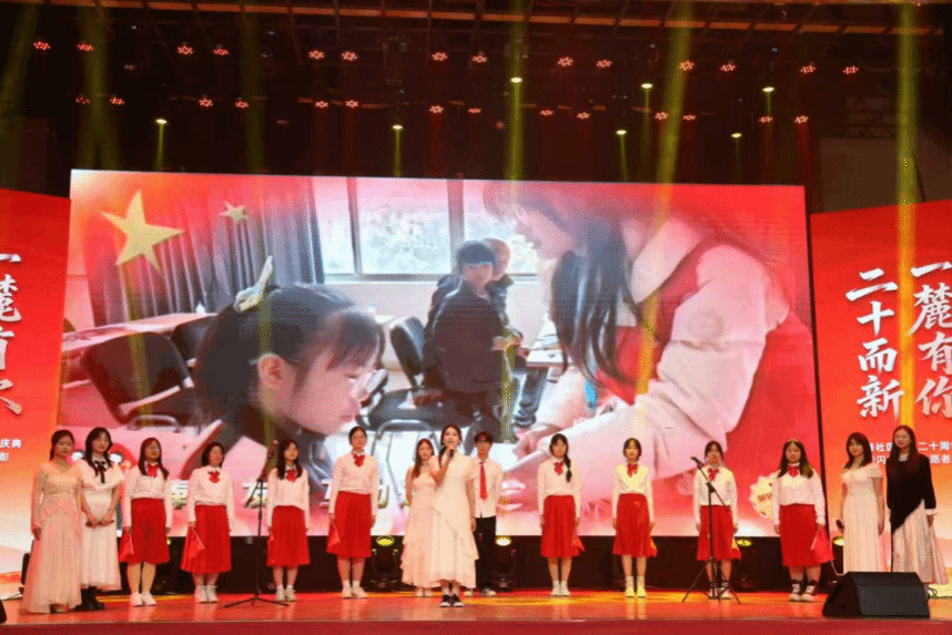 庆典中,我院12名志愿者演绎的歌舞朗诵节目《薪火有我》,串联起社区二十年变迁与我院志愿服务故事,以真挚情感和生动演绎赢得观众的阵阵掌声,彰显了深厚校社情谊,也是我院志愿服务成果的缩影。
