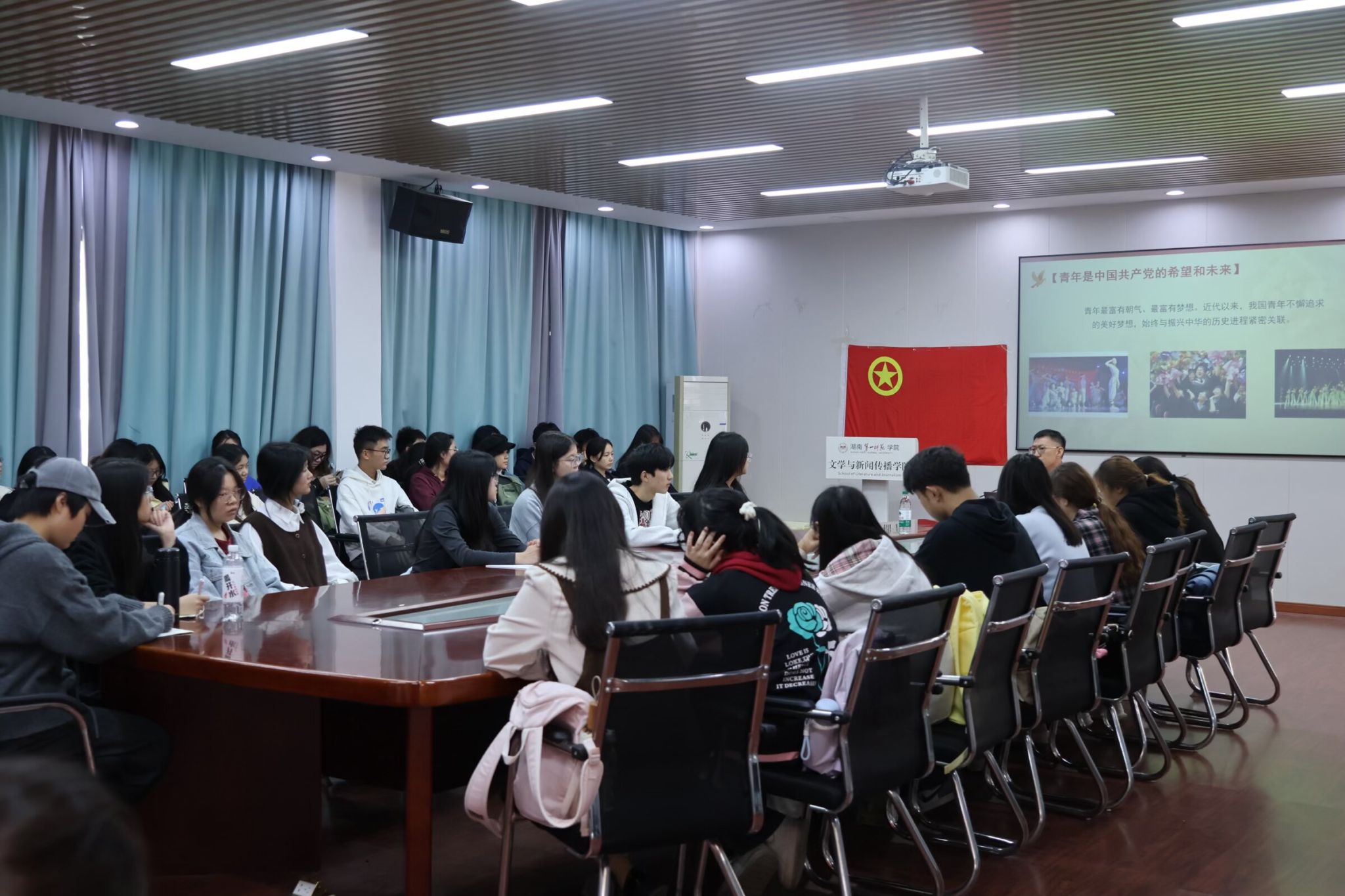 他着重强调,站在新的历史起点上,新时代青年被赋予了非凡的历史使命。他不仅阐述了树立远大理想、刻苦学习、艰苦奋斗、开拓创新、培养高尚品行的核心要求,更指引了将之付诸实践的具体路径。在思想引领上,李豪杰通过解读共产党员与共青团员规模的数据,深刻阐明青年积极向党组织靠拢,是实现个人理想与家国使命同频共振的根本所在。在政策支撑上,他结合湖南省“三高四新”战略,详细介绍了省内的人才引进政策,为学员扎根湖南、建功立业提供了清晰的“路线图”。在实践锤炼上,他特别鼓励学员投身“挑战杯”等创新创业赛事,指导大家将专业所学与社会需求紧密结合,通过跨学科合作提升项目价值,在实践中将知识转化为能力,将使命践行于担当。