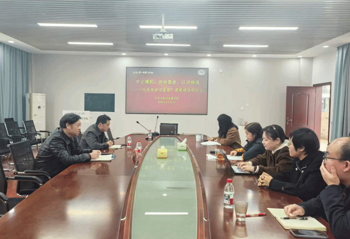 为深入贯彻落实习近平总书记视察我校重要讲话精神,严格对照巡视反馈意见抓整改、促提升,切实把红色育人融入课程建设全过程,3月31日下午,我院在玉衡楼201会议室召开《毛泽东诗词鉴赏》课程建设研讨会。院党委书记刘立勇、院长龙永干、副院长杨水远、张惠及课程组教师参会,聚焦课程思政提质、红色资源转化,全力推动这门红色课程向大思政金课转型,以课程建设实效检验巡视整改成果。