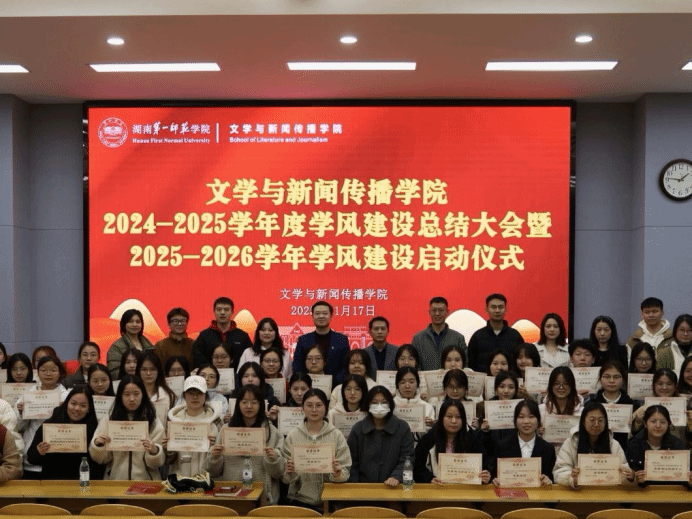 我校“学思并进、知行合一”的学风传统深厚而严谨,与学校“千年学府、百年师范”的辉煌历史紧密相连。今后,我院将继续积极对标学校人才培养新形势、新任务、新要求,充分发挥先进典型的示范引领作用,激励广大同学赓续一师光荣传统,让优良学风成为学生成长的鲜明印记,让学风建设内化为师生的共同价值追求和自觉行动,推动形成狠抓落实、勇于担当、善于创新的学风建设工作局面,在学校建设特色鲜明的师范大学的征程中贡献文传力量。