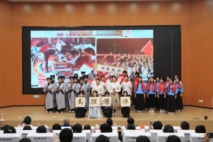 2024级汉语言文学3班团支部以“以‘传’为脉溯来路,育人成才创未来”为主题,回溯了我校西迁历史,融古创今,通过对历史的回望展现对未来的期望,明确青年师范生传承先贤精神内核,筑牢立德树人根基的实践路径。团课以舞台情景剧的形式将烽火连篇岁月中我校西迁的历史娓娓道来,扎实的书法、朗诵、舞蹈、吟唱等师范基本功呈现对传承前辈教育初心、开创崭新未来的坚定决心和信念。