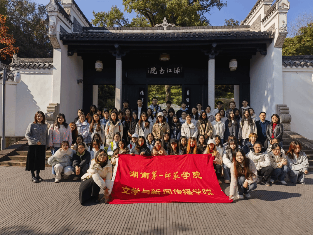 为深入推进“两坚持,两拓展”发展战略,深化教师教育培养模式改革,11月22日,文学与新闻传播学院组织2023级、2024级润之英才班全体学生赴醴陵开展研学实践活动,院党委书记刘立勇、院党委副书记、院长龙永干带队;院党委副书记李豪杰、2023级汉语言文学润之英才班班主任王燕、辅导员王娜和熊薇参加。本次研学以实地走访为主,串联红色记忆与文化传承,引导学生在沉浸体验中汲取精神养分,夯实成长根基。