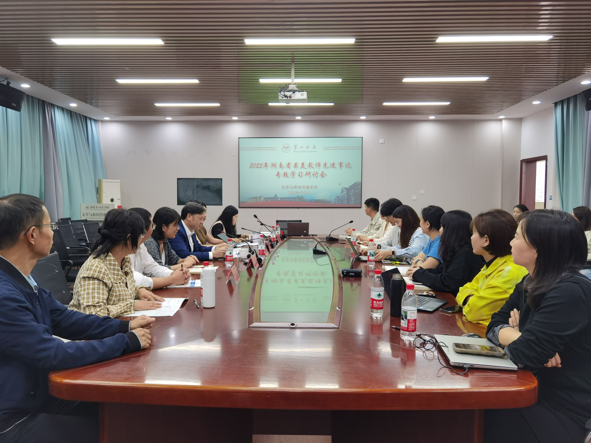 为深入贯彻落实习近平总书记关于教育的重要论述,弘扬尊师重教优良传统,引导广大教育工作者践行教育家精神,落实《中共湖南省委宣传部 中共湖南省委教育工委 湖南省教育厅关于公布 2025 年湖南省最美教师宣传选树人选的通知》精神,文学与新闻传播学院于2025年9月23日在玉衡楼201会议室组织了2025年湖南省最美教师先进事迹的专题学习研讨会,研讨会由院党委书记刘立勇主持,全体教师参加了本次学习研讨会。
